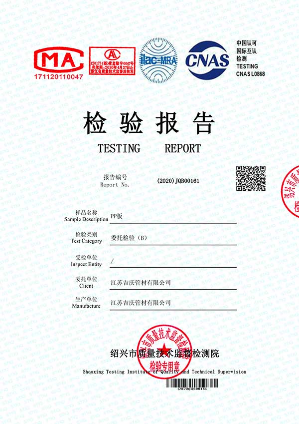 江蘇吉慶管材集團有限公司創(chuàng)辦于2010年2月,是pp管,pp管材,pp管件,pp風管,frpp管,frpp管材,pph管,pph管材,pph管件,pph風管,pvdf管,pvdf管材,pp儲罐,pp板材的專業化生產企業。公司占地30余畝,擁有各類資產8000余萬元,專業技術人員20余人,管材生產線10條,管件生產線11條,具備了10000余噸各類防腐塑料制品的年生產能力。公司通過了ISO9001-2000質量體系認證,同時被評為AAA信用單位,2018年公司被評為高新技術企業,此后陸續(xù)取得安全生產管理證書等榮譽。公司位于水上花園城市----江蘇省揚中市八橋鎮永福路18號,交通便捷,可直接導航至公司園區內。公司全體員工將以高度的敬業精神,嚴格的質量控制理念和科學的管理方法,及時周到的服務,竭力為我國塑料管道在各領域的推廣和應用作出更大的貢獻!